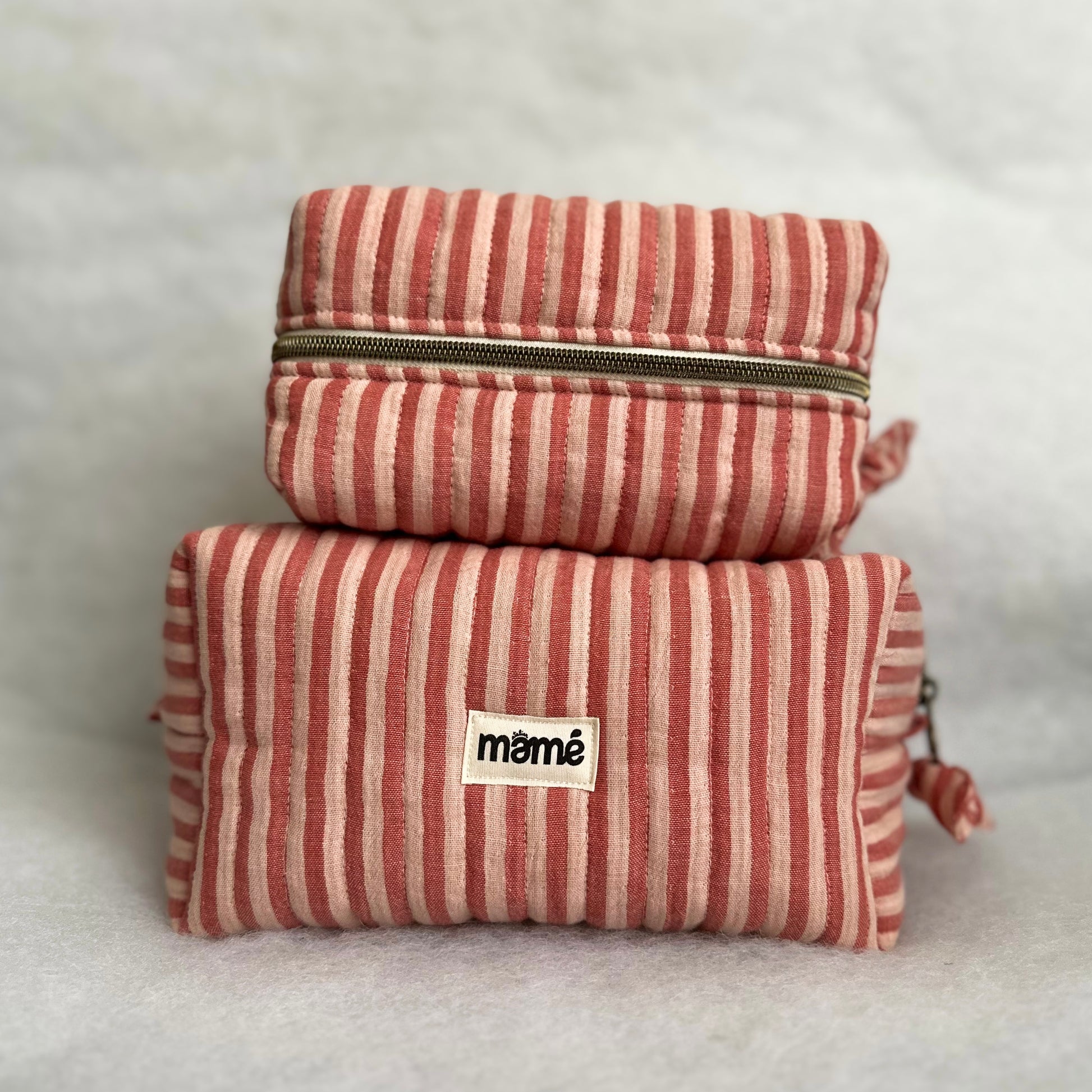 La trousse de toilette en double gaze de coton Bonbon se décline en deux tailles :