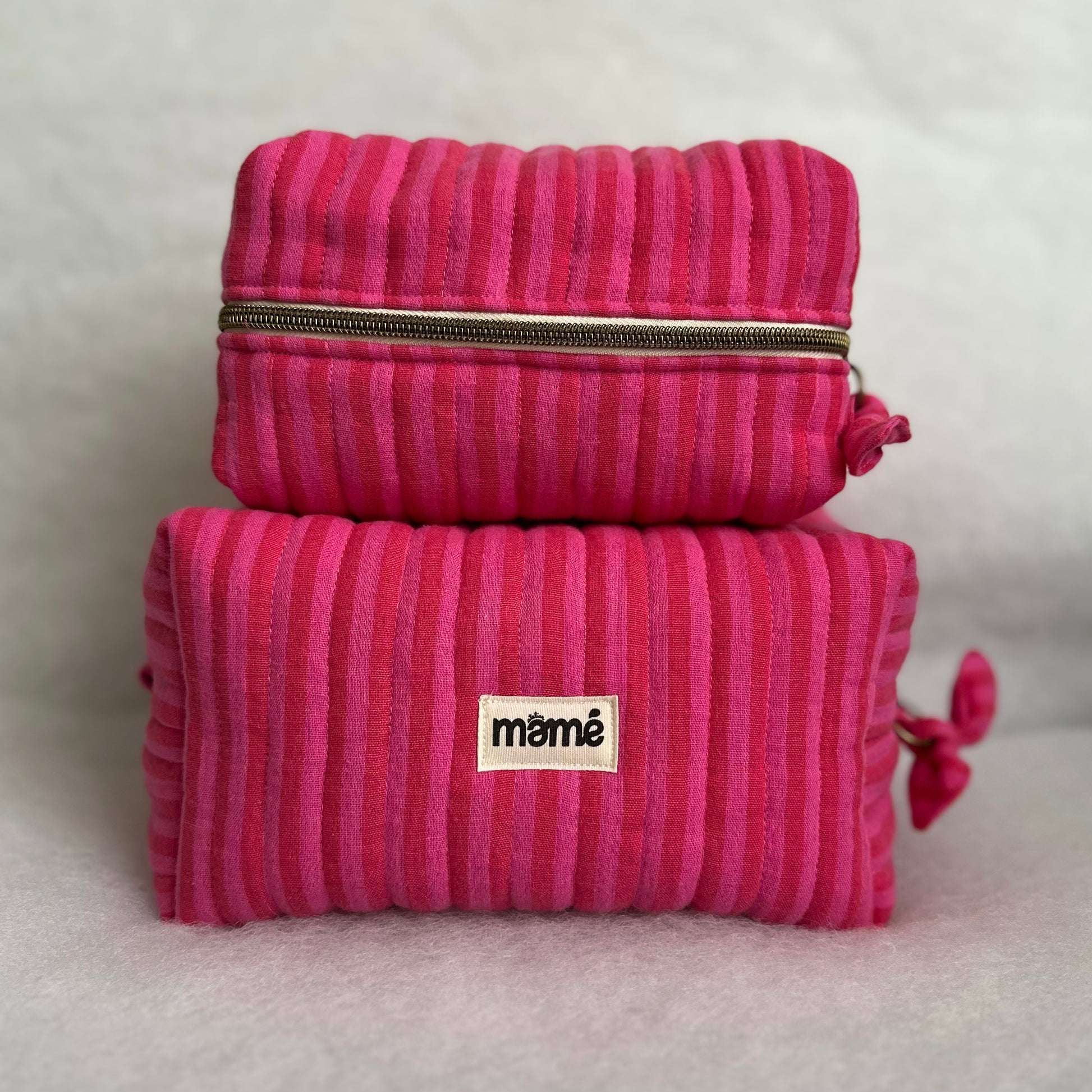 La trousse de toilette en double gaze de coton Hibiscus se décline en deux tailles :